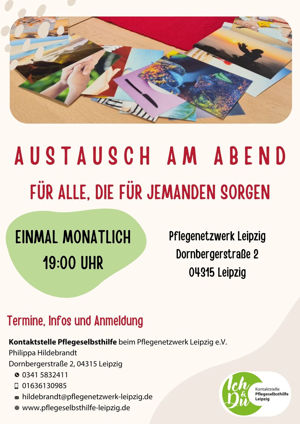Sie sorgen für jemanden und suchen Raum für sich? Der Austausch unter Gleichgesinnten kann erleichtern, bereichern, neue Erkenntnisse bringen. Sie sind herzlich willkommen! Weitere Infos und Anmeldung hier oder unter info@pflegeselbsthilfe-leipzig.de oder 0341 5832411. Wir freuen uns, wenn Sie dabei sind! Auch neue Interessierte sind herzlich eingeladen.